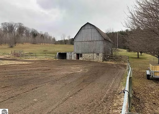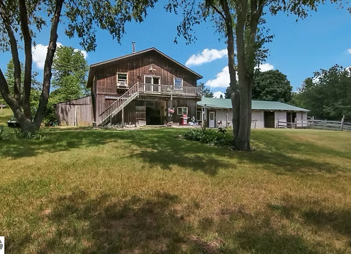 ATTENTION HORSE LOVERS! Beautiful equestrian facility with 7.5 acres (mostly fenced); stable, tack room (with 1/2 bath), office, + 72 x 80 indoor riding arena (with 16 x 12 attached hay barn). 10 stall stable (8 stalls have runs attached) is attached to raised ranch via tack room, with 3 additional stalls underneath home (approximately 12 x 12 each). Home offers 3 bedrooms, wood-stove, large entry mud room and open living/kitchen/dining area with vaulted wood ceilings. Property also includes fenced in-ground pool! Minutes away from Lake Ann, Traverse City and Shore-to-Shore Michigan State Trail.