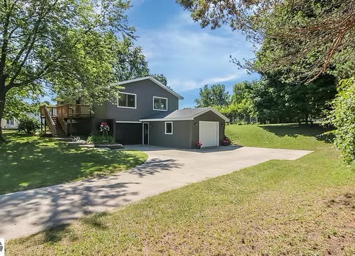 Convenient location within walking distance of the Grand Traverse Mall. Raised ranch (Two 1-car garages and storage room underneath). Lovely back yard with thriving garden. Unfinished basement for possible expansion. Nicely updated bathroom with tile. 2 decks (11 x 14.6) entry and rear. Concrete driveway.Vinyl siding is 2 years old, roof was replaced in 2012, main level recently repainted. Central air