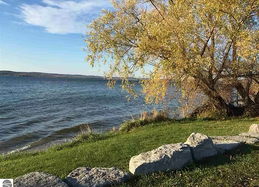 201' frontage on the coveted northern shore of Little Traverse Lake. Adjoins national lakeshore (to north across road) within walking distance of Lake Michigan. Beautifully wooded with a mix of trees. Gently sloping to water's edge. A total of 200' (2 lots) is available (Lots can also be purchased separately: see MLS numbers 1901809 and 1901810 at $375,000 each) Little Traverse Lake is 640 acres with a maximum depth of 54'. There is the Swanson Nature Preserve comprising 90 acres with 2000' frontage on the lake - cannot be built upon.